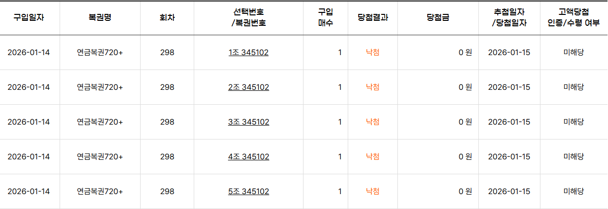 | [제298회 연금복권720+] 데이터 분석 기반 통계 연구 (0) | 2026.01.14 |